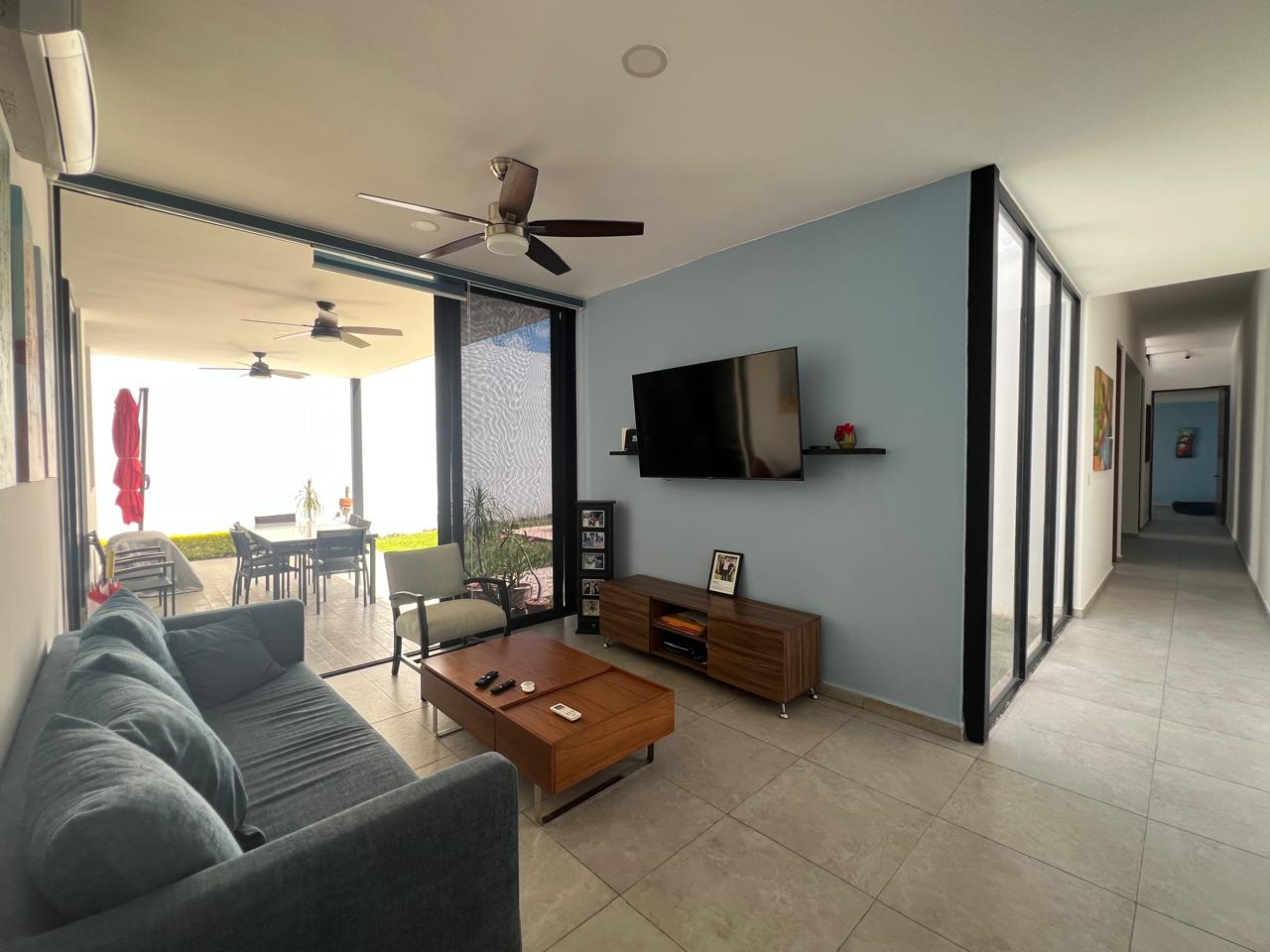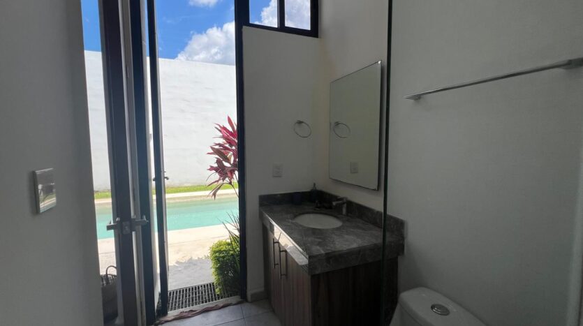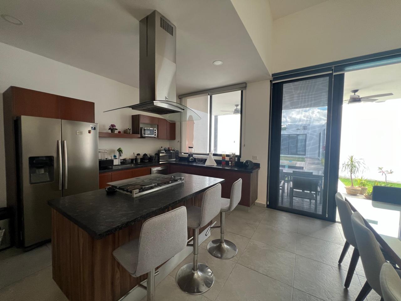 Completed only 4 years ago, this one-level, contemporary home in the Mirova development features an open concept living room/dining room/kitchen with an automated 4-car, covered garage. Ā With 3 large bedrooms, all with en suite bathrooms, and one accesible from the pool area, it is a spacious residence with many bells and whistles including a service quarters with its own complete bathroom. Ā The fully equipped kitchen has top of the line appliances, full custom cabinets, granite counter tops, granite back-splash everywhere, vented stove exhaust, an island, and even a large walk-in pantry and separate cutlery/crockery pantry with built in shelves. Ā The living and dining areas are huge and there is a separate TV room or den just off of this space. Ā A large covered terrace sits next to the filtered swimming pool and becomes one with the indoors via sliding glass doors on two sides. Ā For added peace of mind the home has electric perimeter fencing, both security and Low-E film on all glass doors and windows, and a complete security camera system for remote monitoring when away. Ā The home is in excellent condition and also features an icynene insulated roofing system for added energy savings.