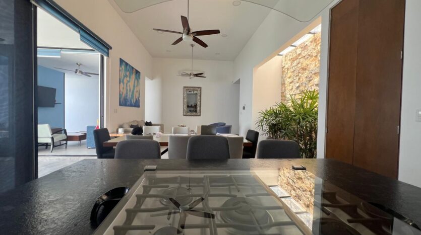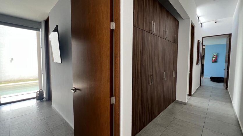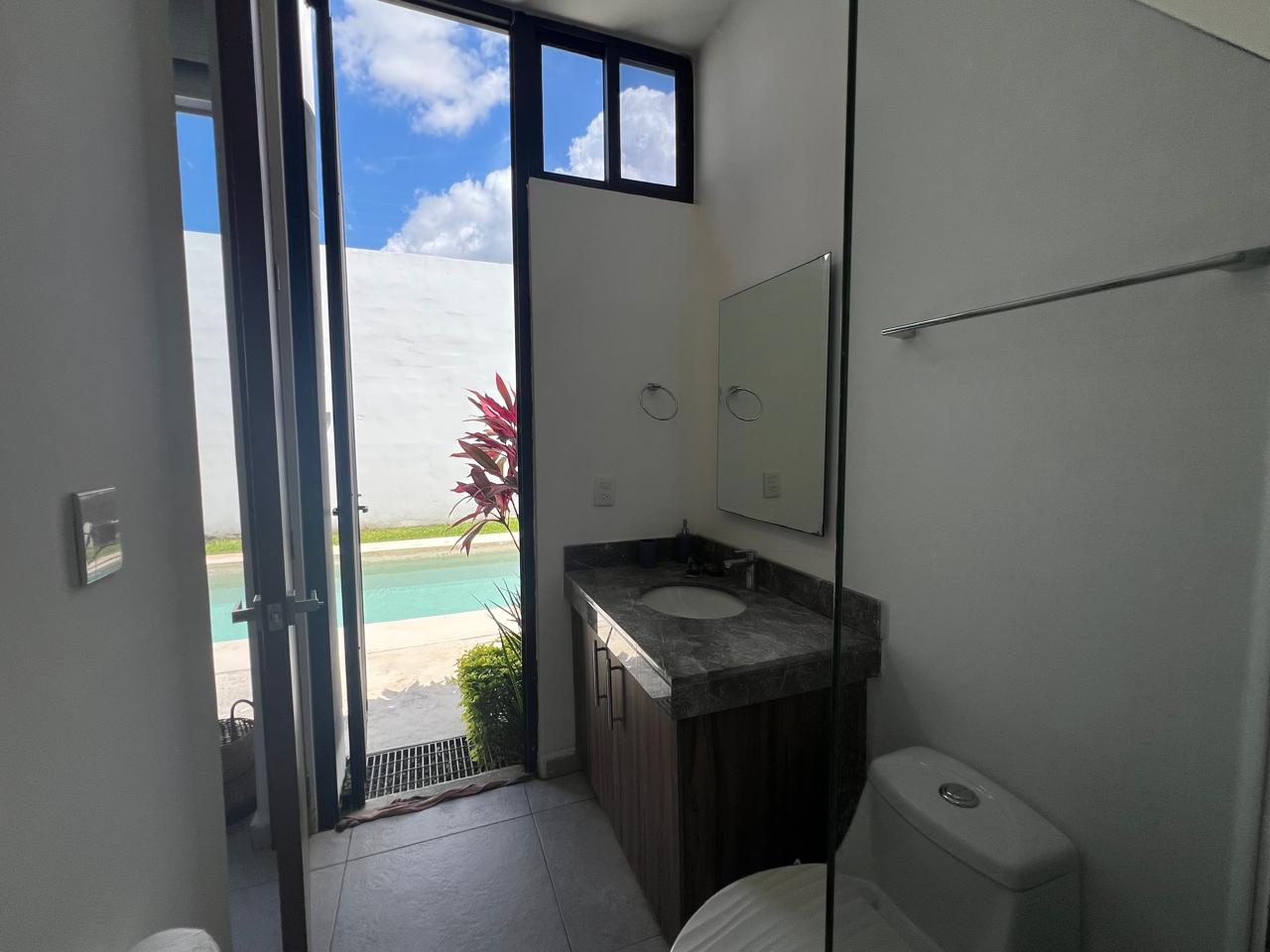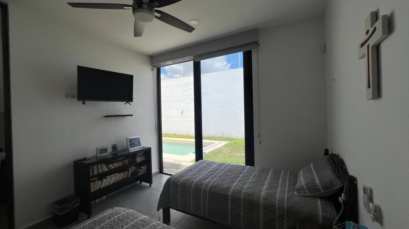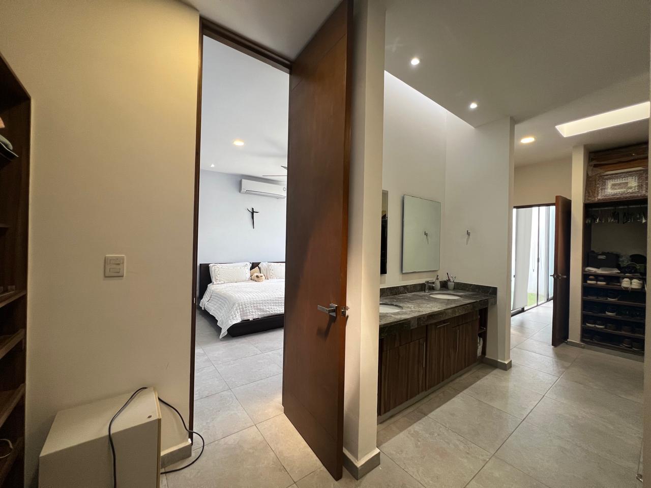 Completed only 4 years ago, this one-level, contemporary home in the Mirova development features an open concept living room/dining room/kitchen with an automated 4-car, covered garage. Ā With 3 large bedrooms, all with en suite bathrooms, and one accesible from the pool area, it is a spacious residence with many bells and whistles including a service quarters with its own complete bathroom. Ā The fully equipped kitchen has top of the line appliances, full custom cabinets, granite counter tops, granite back-splash everywhere, vented stove exhaust, an island, and even a large walk-in pantry and separate cutlery/crockery pantry with built in shelves. Ā The living and dining areas are huge and there is a separate TV room or den just off of this space. Ā A large covered terrace sits next to the filtered swimming pool and becomes one with the indoors via sliding glass doors on two sides. Ā For added peace of mind the home has electric perimeter fencing, both security and Low-E film on all glass doors and windows, and a complete security camera system for remote monitoring when away. Ā The home is in excellent condition and also features an icynene insulated roofing system for added energy savings.